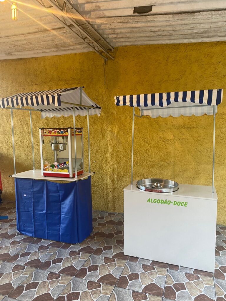 Quando der aquela fominha, é hora de aproveitar para comer uma deliciosa Pipoca e depois desfrutar de um delicioso Algodão Doce.